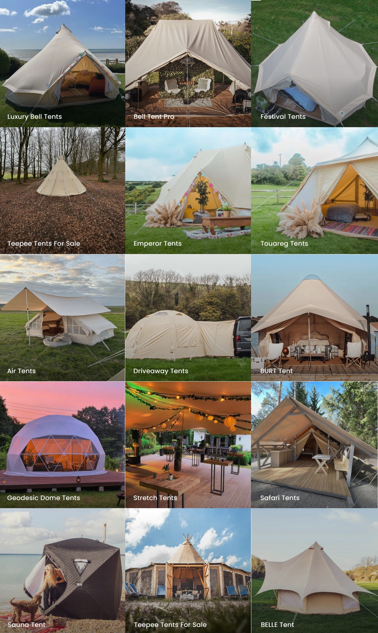 At Bell Tent Sussex, we offer a wide variety of bell tents for sale to suit every kind of outdoor adventure — from weekend camping trips and garden glamping to luxury event setups and professional hire businesses. Our classic cotton bell tents are crafted from high-quality, breathable canvas for comfort and durability in all seasons. We also stock trade-grade tents, designed for rental and campsite use, as well as inflatable tents such as the Air Venture, with pole-free setup. For larger events, explore our stretch tents made in Europe by Qtents, and our luxury safari tents that deliver a high-end glamping experience. Whatever your needs, Bell Tent Sussex provides exceptional quality, fast UK next day delivery, and expert advice to help you choose the perfect bell tent for sale