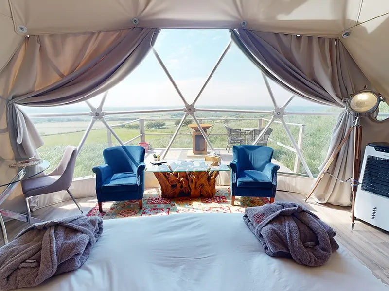 These domes combine luxury and practicality. They offer spacious interiors, strong weather resistance, and stylish modern designs that attract guests. With proper insulation, they provide year-round comfort, making them perfect for UK glamping sites.